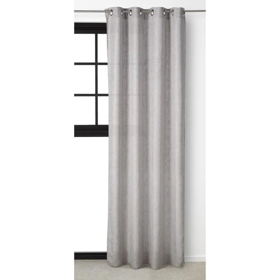 Kant en klaar ringgordijn van stevige zandkleurige stof. Soepelvallend en kreukherstellend. 135 cm breed.