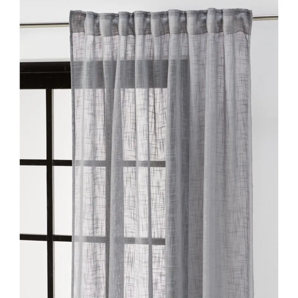 Kant en klaar gordijn van soepelvallende grijze stof. Stevig en kreukherstellend. 140×260 cm (bxh).