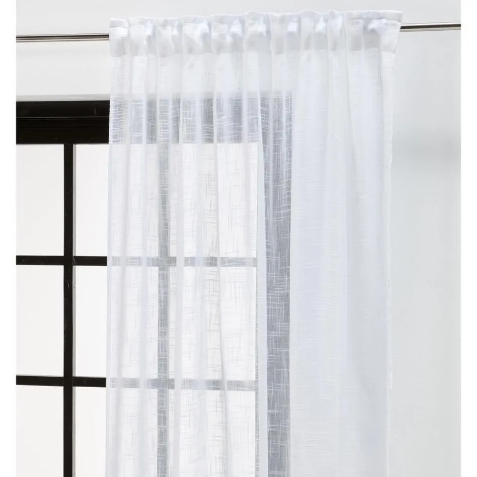 Kant en klaar gordijn van soepelvallende witte stof. Stevig en kreukherstellend. 140×260 cm (bxh).