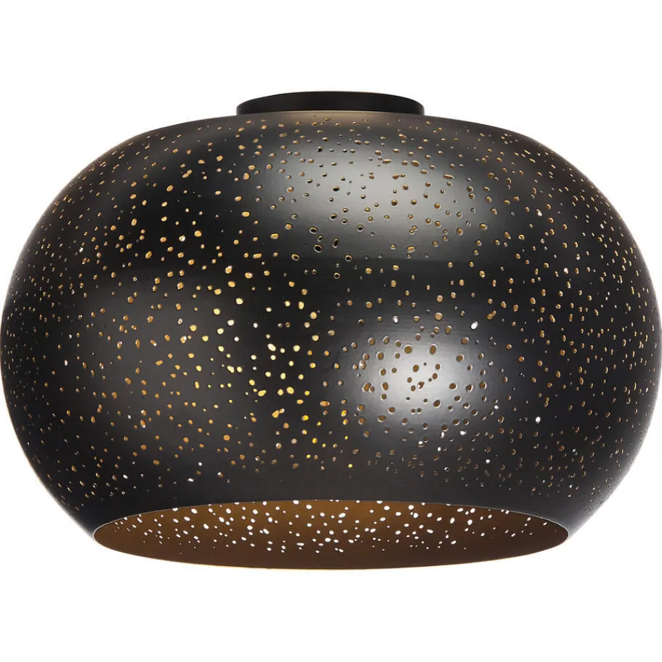 Plafondlamp Gemino in de kleur zwart. Heeft kleine gaatjes, waardoor dit een speels effect geeft in de ruimte. Gemaakt van 100% metaal. ø34×22,5 cm.