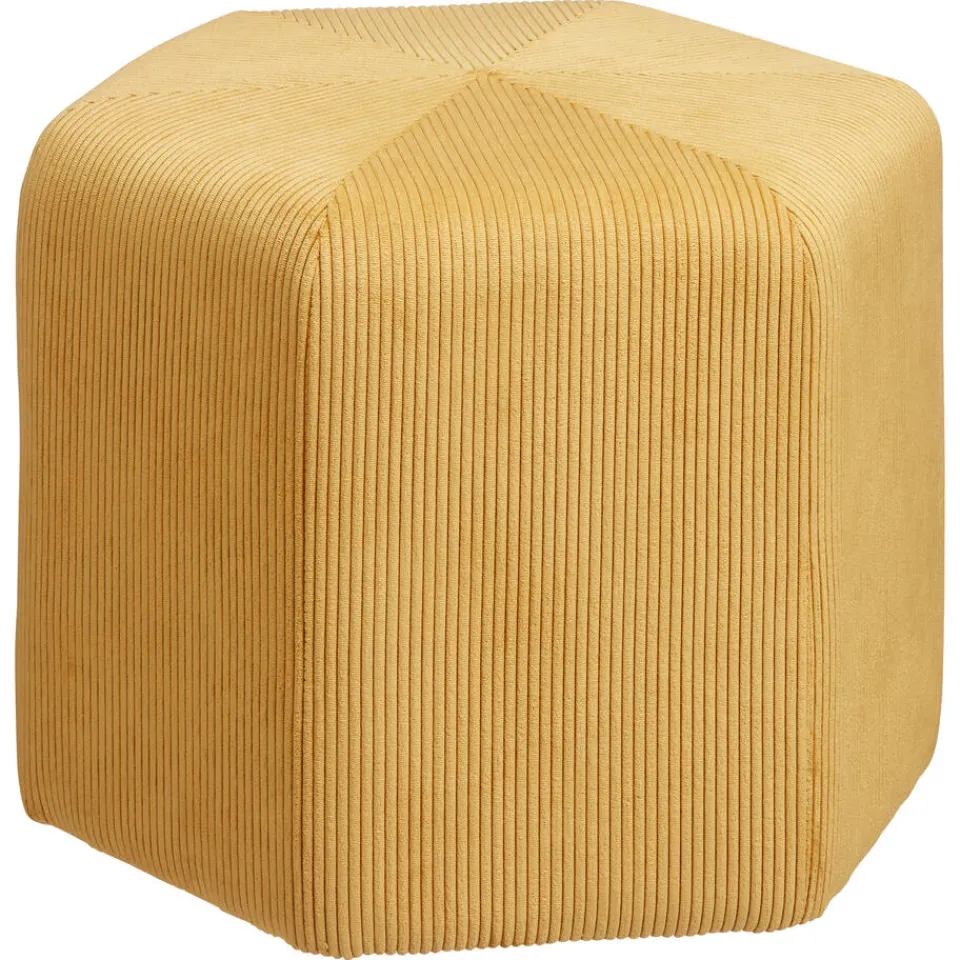 Poef Zesto heeft een speelse bekleding in een oker kleur. Door de gele stof is het een echte eye catcher voor in jouw interieur. De poef is gemaakt van MDF en polyester en heeft een afmeting van 48X43X35 cm (lxbxh).