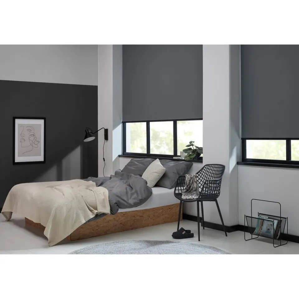 Verduisterend rolgordijn grijs. De achterzijde is meekleurend. Ideaal voor slaapkamers maar ook te gebruiken voor keukens en andere woonruimtes. De stofkan tot 350 cm extra breed worden gemaakt en is geschikt voor grote ramen. Op maat te maken en volledig naar wens samen te stellen met een ruime keuze uit accessoires en uitvoeringen. Elektrische bediening en zijgeleiding is mogelijk. Ook geschikt voor draaikiepramen. Eenvoudig met een vochtige doek af te nemen.