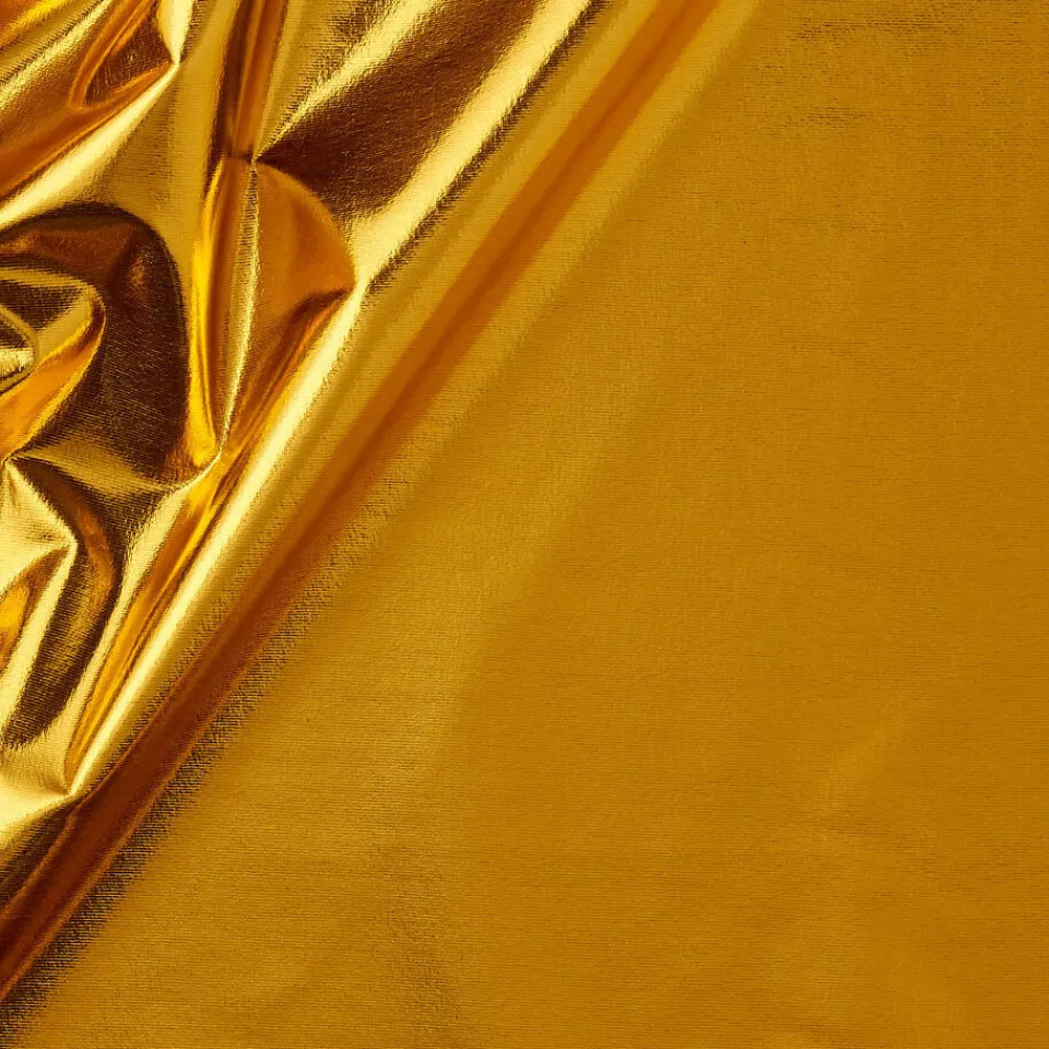 Stof Jelle in de kleur goud. Soepel vallende stof die gemaakt is van 95% polyester en 5% elastan. 150 centimeter breed.