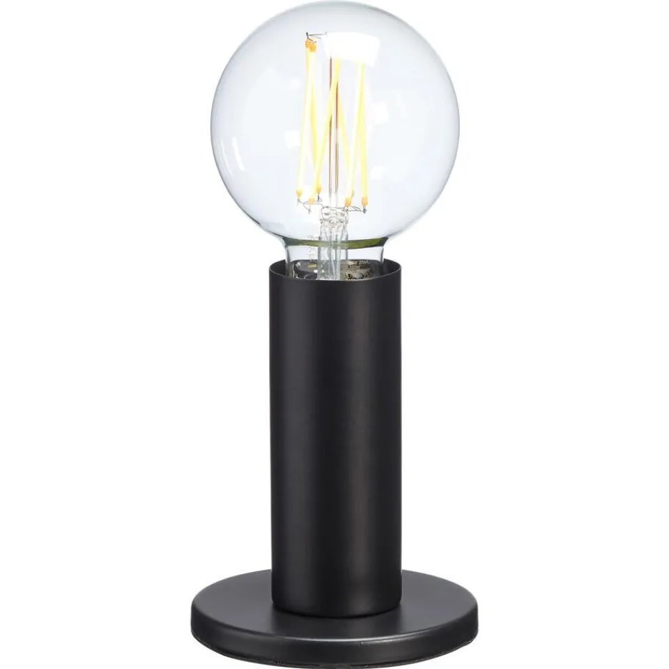 Tafellamp van zwart metaal en doorzichtig glas voor een industriële look. Fitting E27. 14 cm hoog.