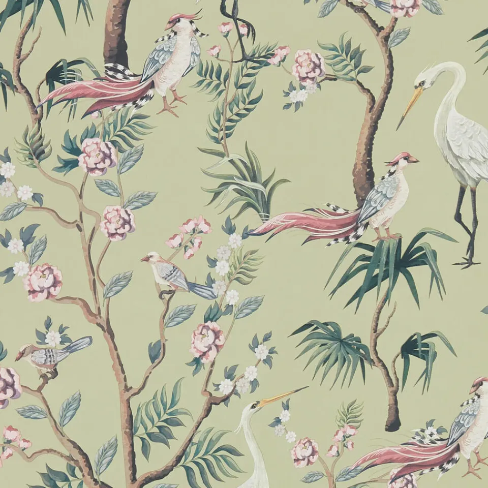 Behang Emma in de kleur groen. Gemaakt van 100% cellulose. 53cm breed en 53cm patroonhoogte.