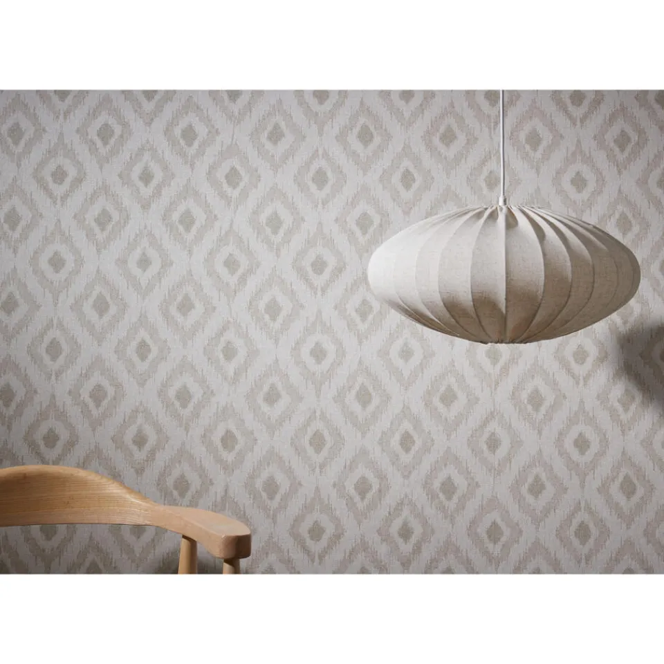 Vliesbehang Jolanda in een zand kleur met sfeervol ruit dessin. Goed afwasbaar. Voorzien van het FSC-keurmerk. Plakken met Perfax Pink. 10 meter per rol.