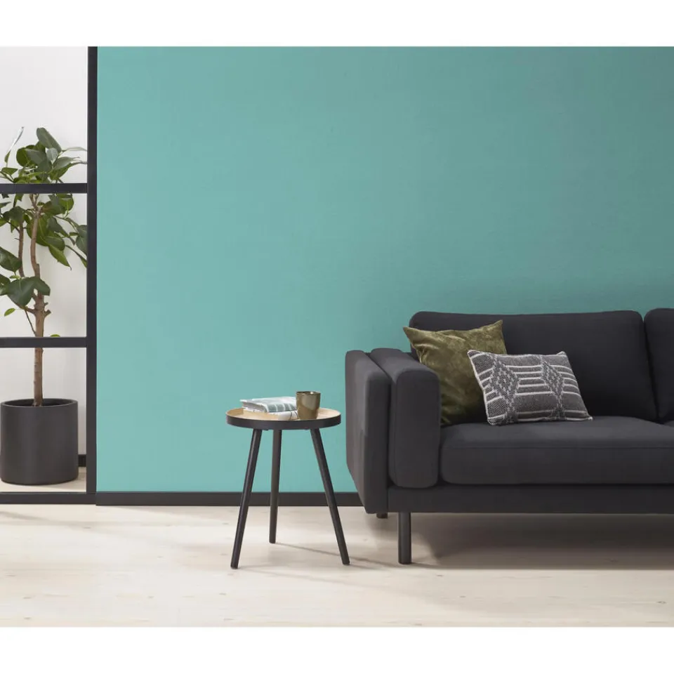 Sfeervol vliesbehang uni. Kleur: azuur. 10 meter per rol. Plakken met Perfax Roll-On.