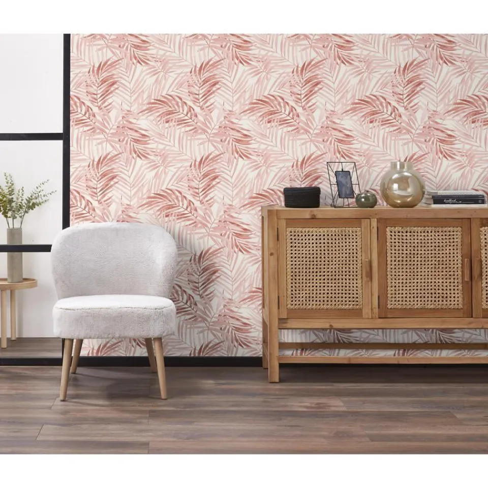 Vliesbehang met bladeren dessin. 53 cm breed. 10 meter per rol.