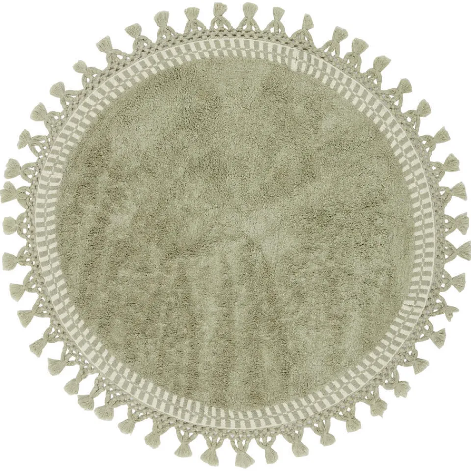Rond vloerkleed Hana in een groene kleur. Dit vloerkleed bestaat uit getuft katoen en is handgemaakt. ø100 centimeter
