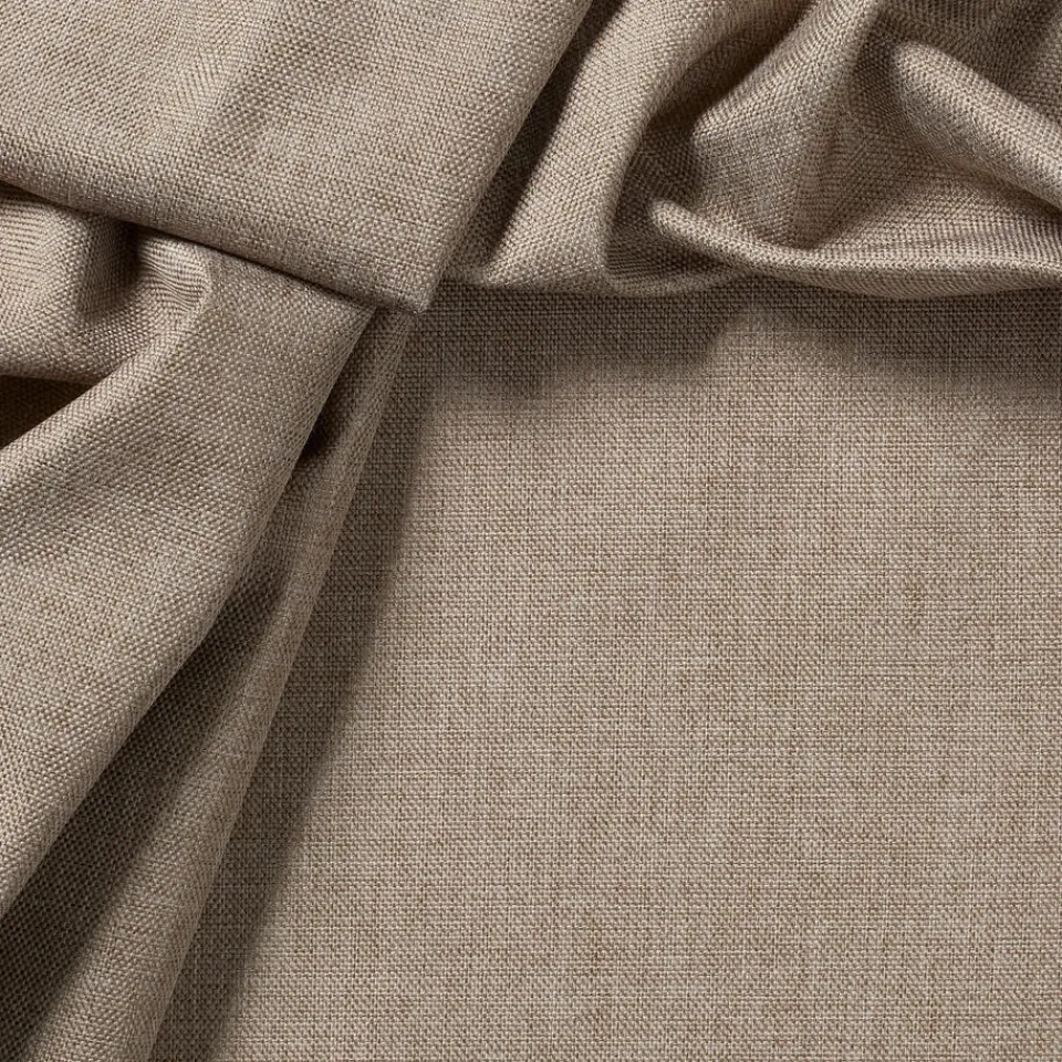 Gordijn Nina is in een warme bruine kleur. De stof is gemaakt van 100% polyester en heeft een compleet verduisterend effect, dit omdat de achterkant van de stof voorzien is van een witte blackout coating.