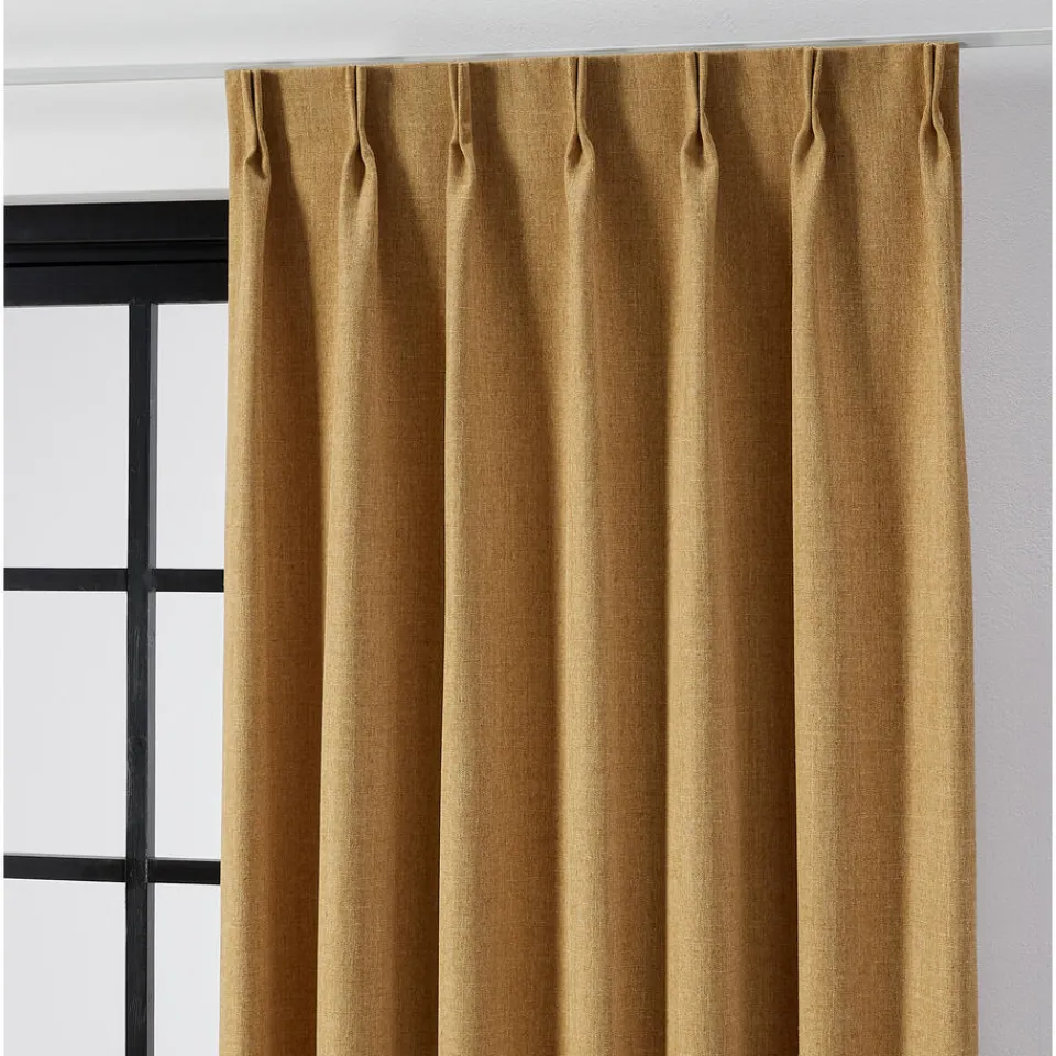 Gordijnstof in gele kleur. Soepel vallend, stevig en kreukherstellend. 145 cm breed.