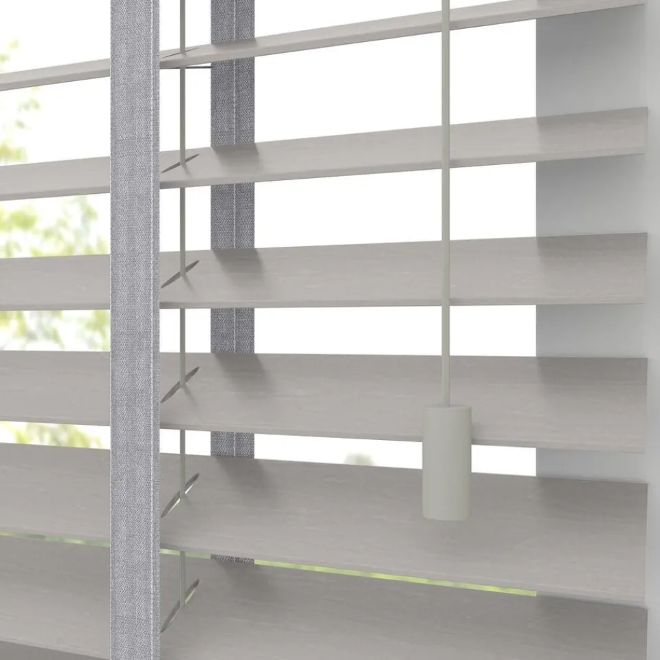 Houten jaloezie lichtgrijs met een klassieke uitstraling. 100% hout. De brede lamellen van 50 mm zorgen voor veel lichtinval en bieden veel privacy wanneer je deze sluit. Op maat te maken en volledig naar wens samen te stellen. Bepaal zelf de bedieningszijde en kies uit diverse accessoires en uitvoeringen. Keuze uit een bijpassend ladderkoord, 48 verschillende ladderbanden en een koordhanger van hout, rvs of zwart metaal.