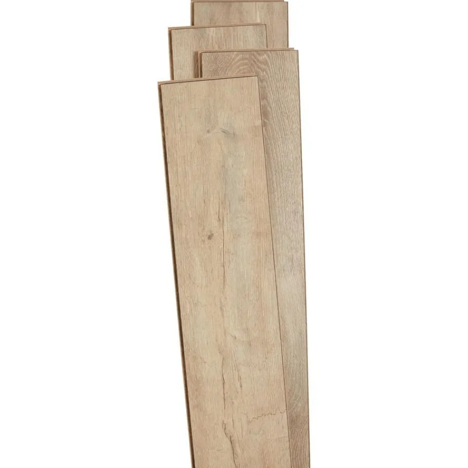 Laminaat met naturel eiken kleur. Antistatisch en geschikt voor vloerverwarming- en koeling. 8 mm dik.