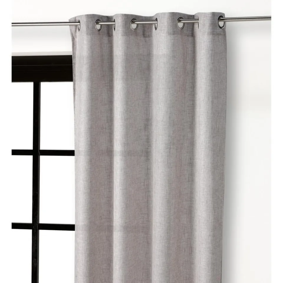 Kant en klaar ringgordijn van stevige zandkleurige stof. Soepelvallend en kreukherstellend. 135 cm breed.