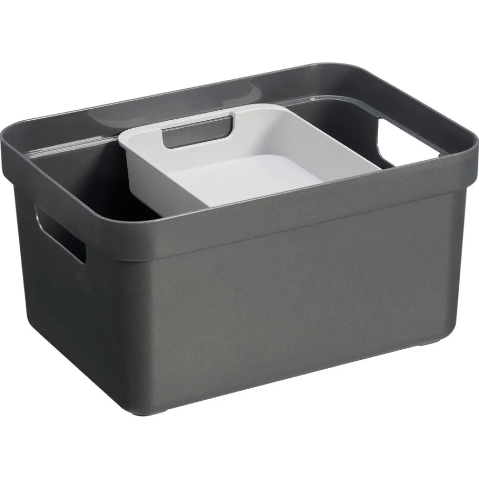 Tray grijs. Gemaakt van 100% gerecycled kunststof. Verkrijgbaar in verschillende maten vanaf maat S. Maat S is geschikt voor de 5L opbergbox.