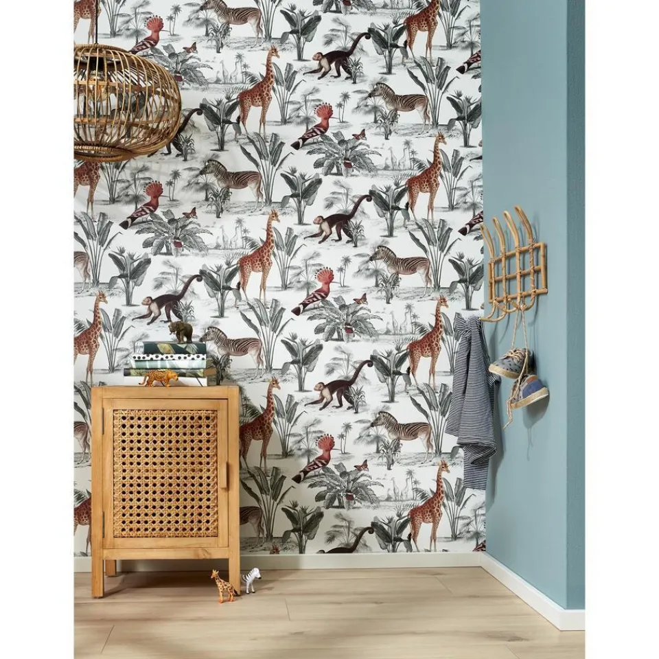 Sfeervol wit vliesbehang. Afwasbaar. Verspringend motief. Lijmen met Perfax Roll-on.