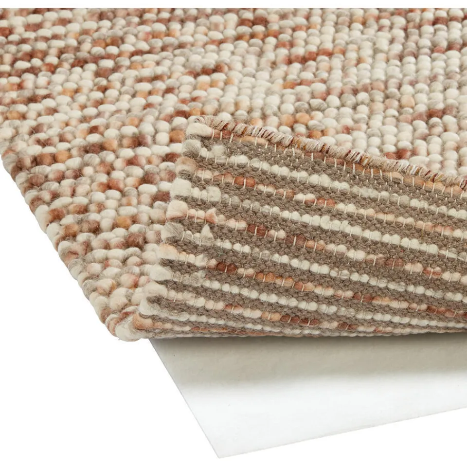 Handgemaakt vloerkleed van terrakleurig wol. Veerkrachtig, warmte isolerend en geluiddempend. Geschikt voor vloerverwarming. 1,6 cm poolhoogte. 160×230 cm (bxl). Ook verkrijgbaar in 133×190 cm en 200×280 cm en in diverse kleuren.