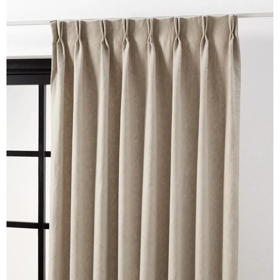Soepelvallende naturelkleurige linnen gordijnstof. 140 cm breed.