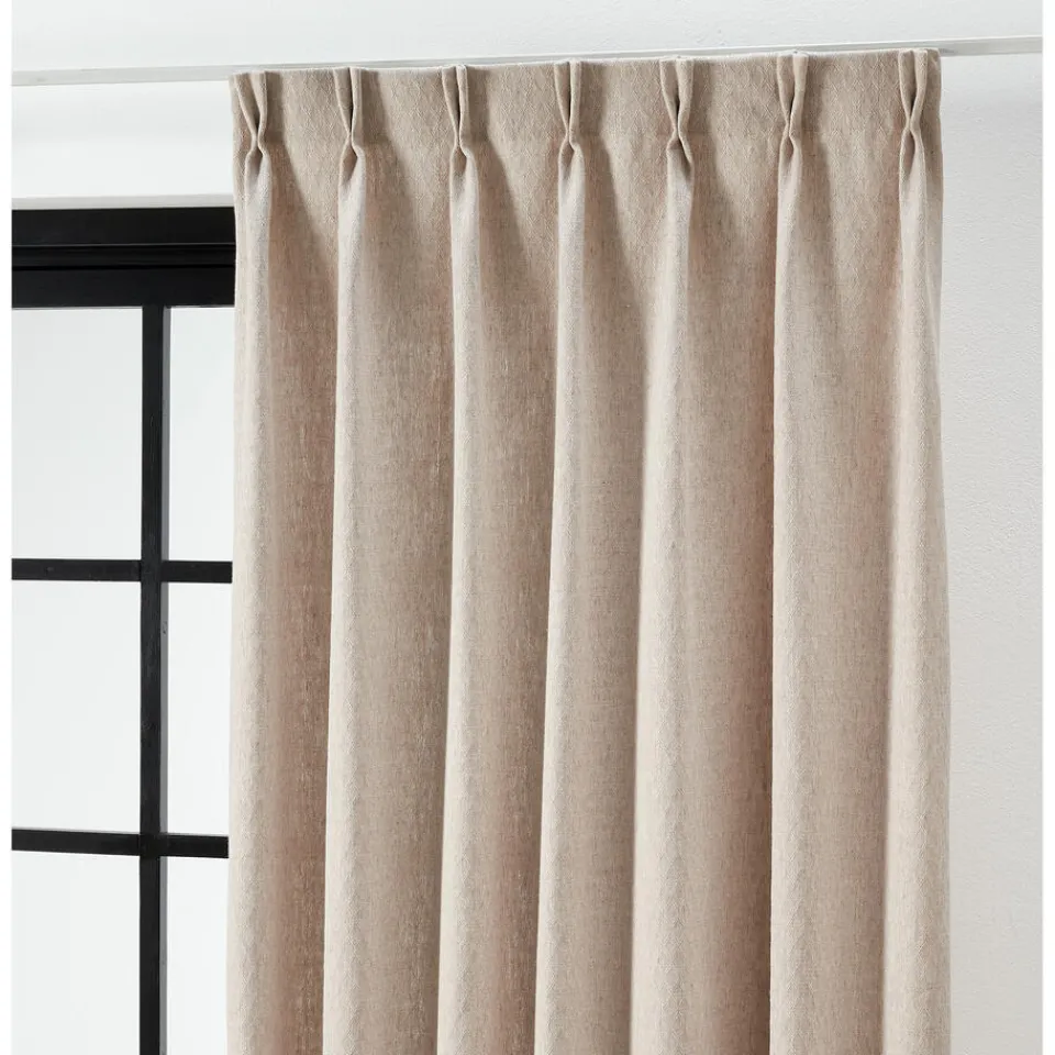 Lichtdoorlatende gordijnstof naturelkleurig met linnenlook en subtiel geweven patroon. Stevig, vormvast en slijtvast.140 cm breed.