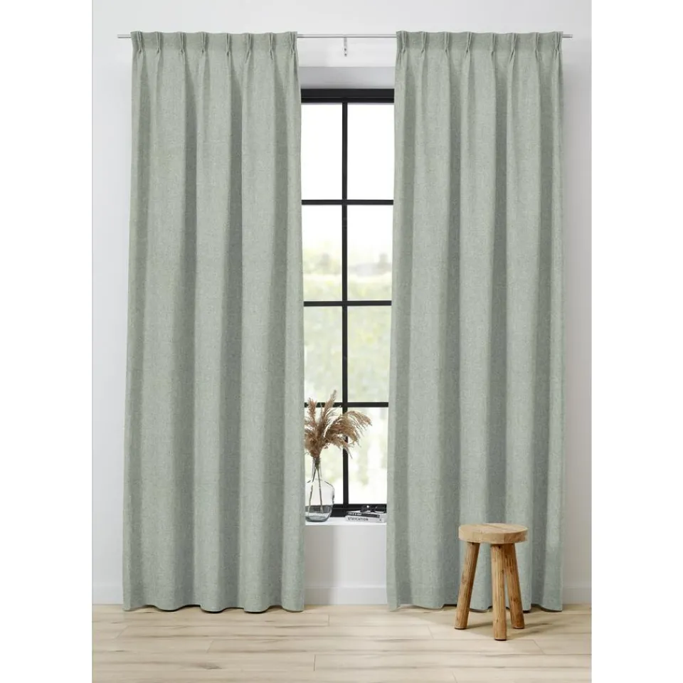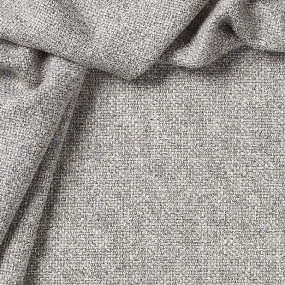 Gordijnstof van stevig lichtgrijs materiaal. Soepelvallend en kreukherstellend. 144 cm breed.