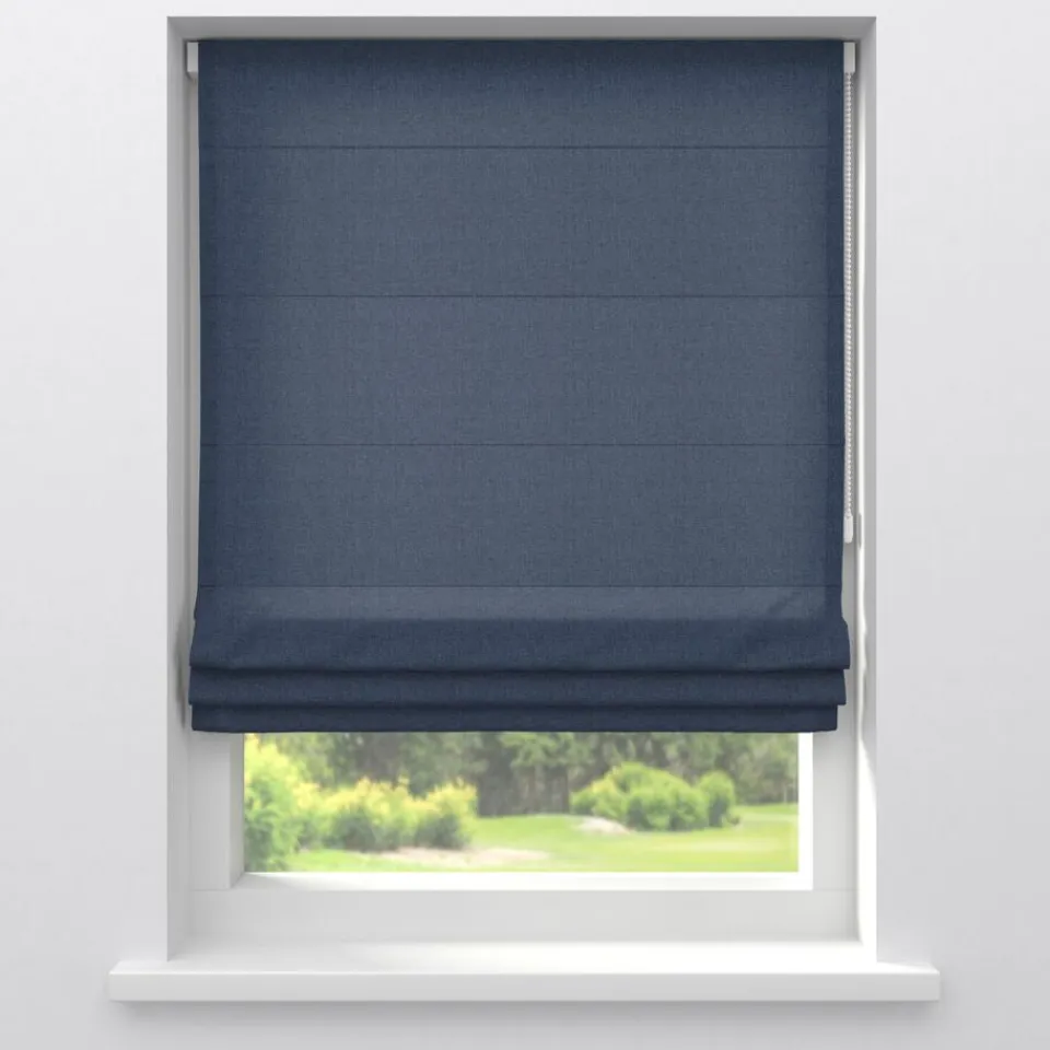 Gordijnstof in een blauwe kleur. 100% polyester. Soepelvallend, stevig en kreukherstellend. 145 cm breed. Zelf te wassen tot 40 graden.