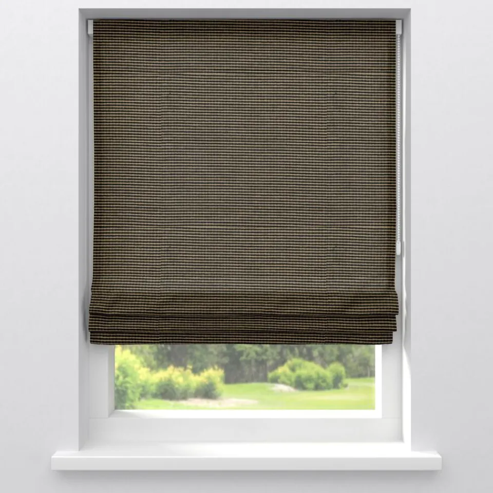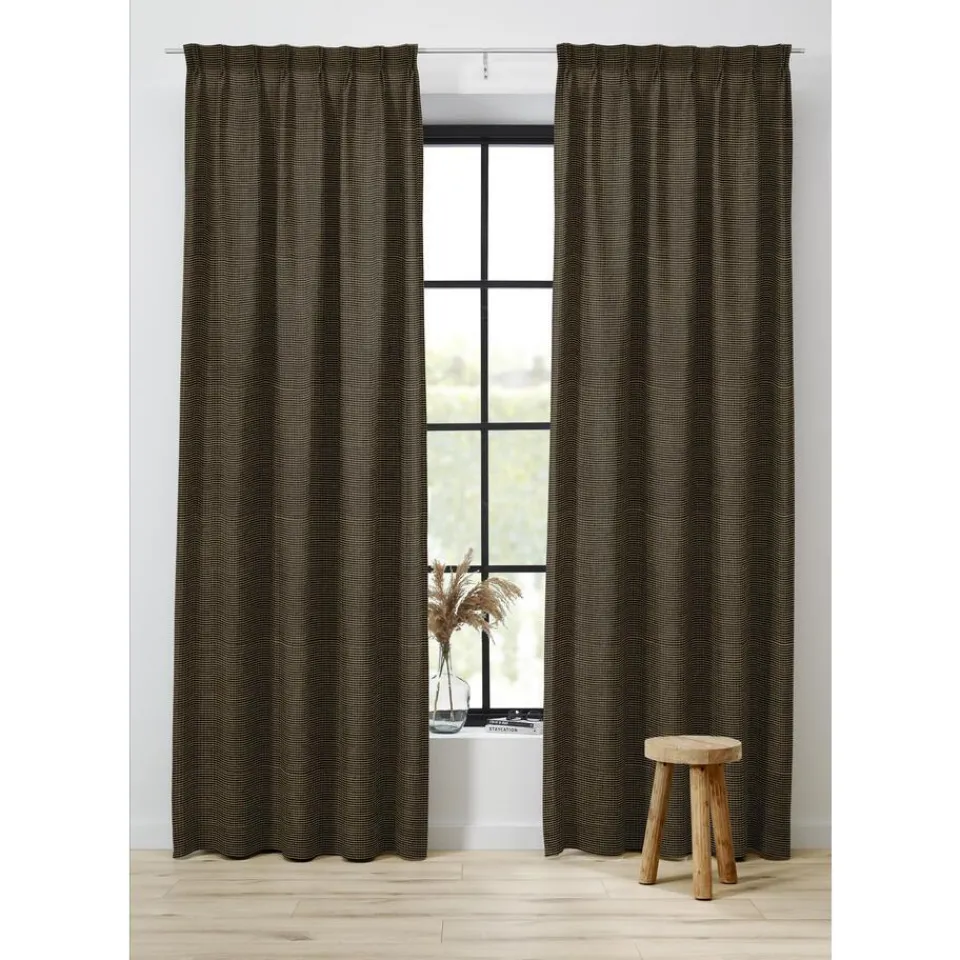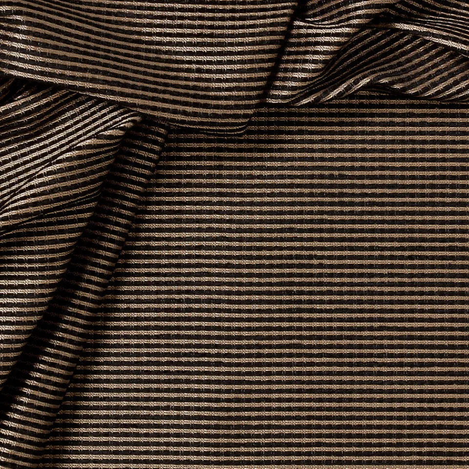 Gordijnstof van luxe materiaal met een zwarte en gouden kleur. Zacht en sterk. 140 cm breed.