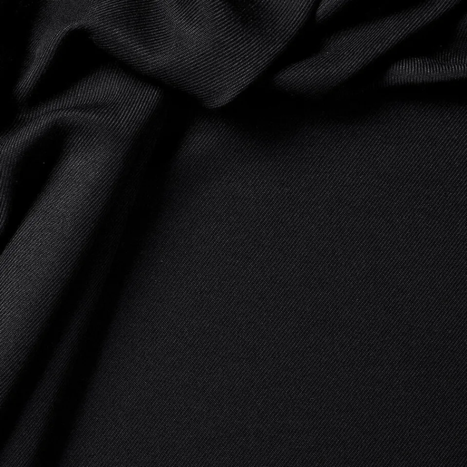 Lichtdoorlatende zwarte uni gordijnstof. Dit gordijn is stevig, vormvast en valt soepel. De stof is gemaakt van 100% polyester. 150 cm breed.