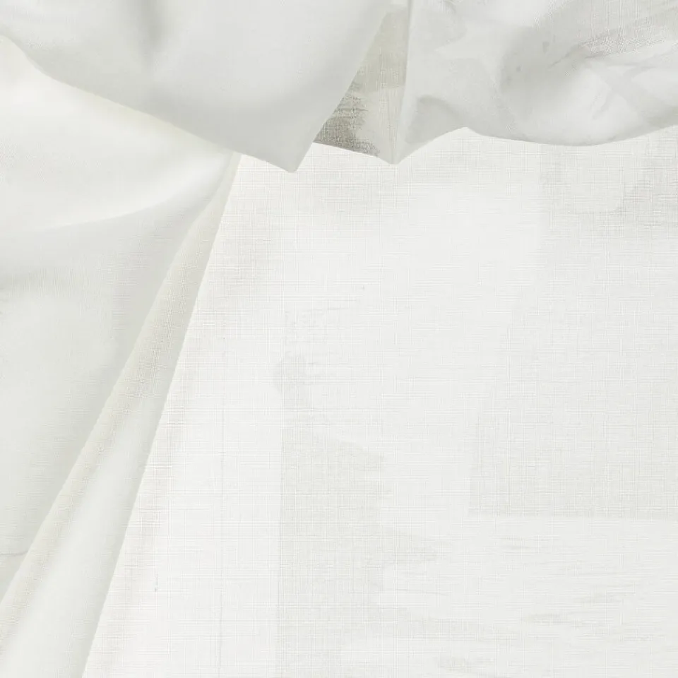Inbetween van soepele witte stof met subtiel dessin. Vormvast. 298 cm hoog.