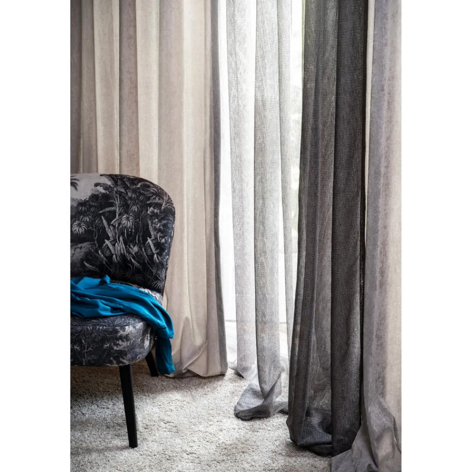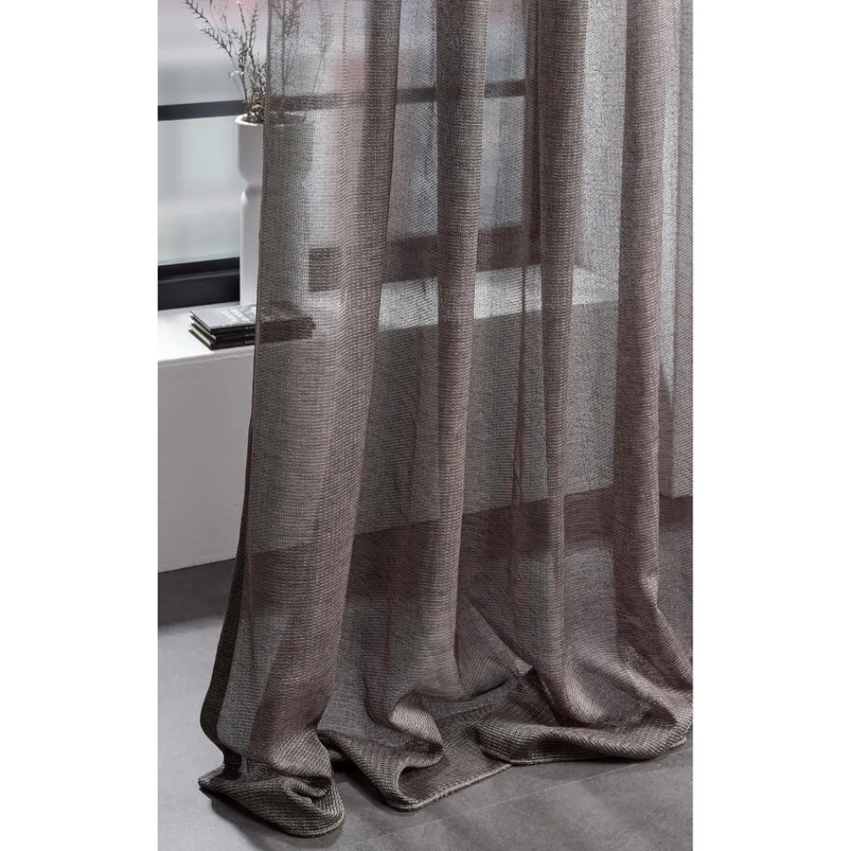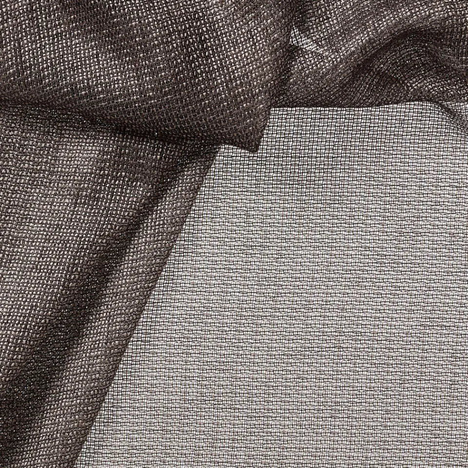 Transparante gordijnstof antracietkleurig. De lichtglanze stof heeft een subtiel opengewerkte structuur en een luxe uitstraling. Stevig, vormvast en soepel. Goed te combineren met een waveplooi maakwijze. 300 cm.