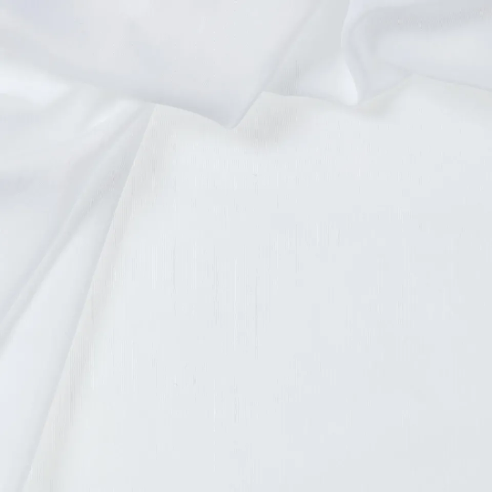 Vitragestof van soepelvallend wit materiaal. Stevig en kreukherstellend. 300 cm hoog.